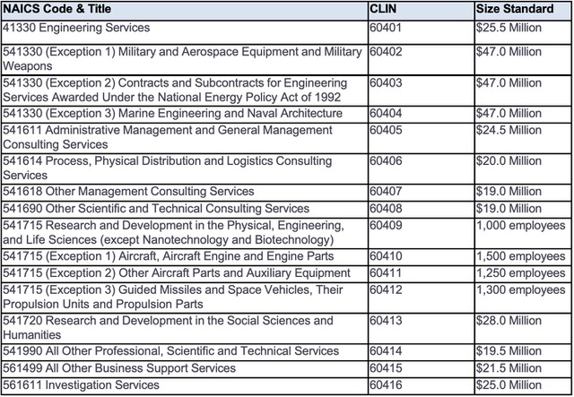 The contract scope is organized by domains or functional groupings of related services spanning multiple NAICs codes. Domains and the NAICS codes listed under the domains are designed to align order requirements to qualified industry partners. Each domain is limited to the NAICS codes and associated size standards specifically listed under that domain.